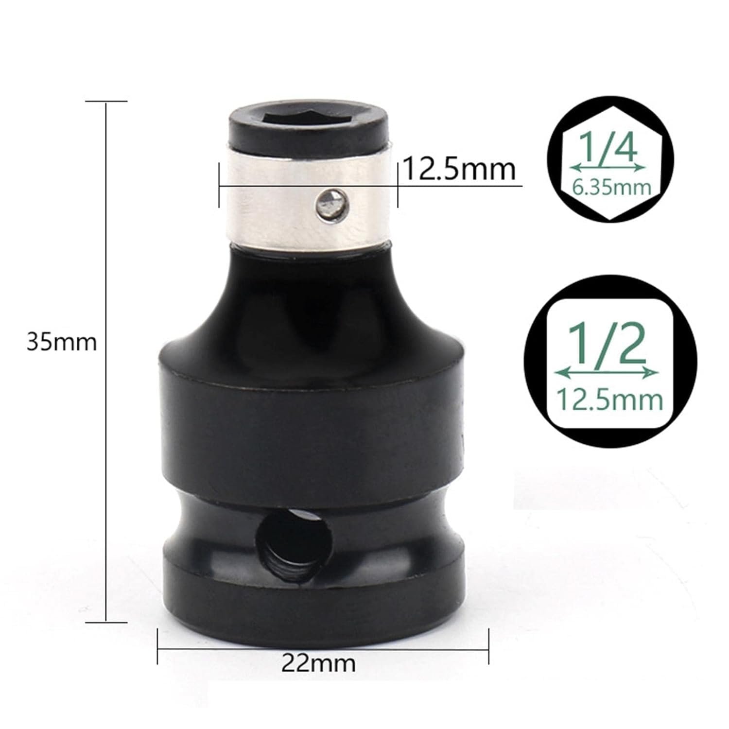 This universal socket adapter is designed to convert a 1/2? square drive into a 1/4? hex bit holder, enabling versatile use across multiple tools. Its one-piece construction ensures strength and durability for reliable performance under load. Compatible with impact wrenches, ratchets, and drills, it allows quick conversion into a screwdriver or nut driver. Compact and lightweight, it is easy to carry and store. Ideal for automotive repairs, mechanical work, and DIY applications, this adapter enhances tool flexibility and improves work efficiency.