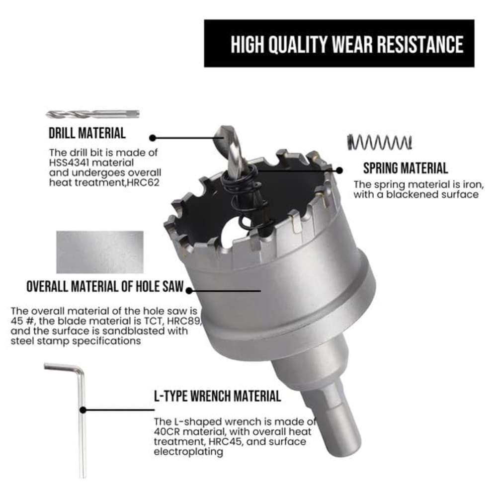 Achieve precise, burr-free holes in stainless steel, alloys, and plastics with this TCT hole saw. Features a three-blade tungsten carbide tip for smooth, accurate, and wear-resistant performance—designed for effortless, high-speed drilling on tough materials.