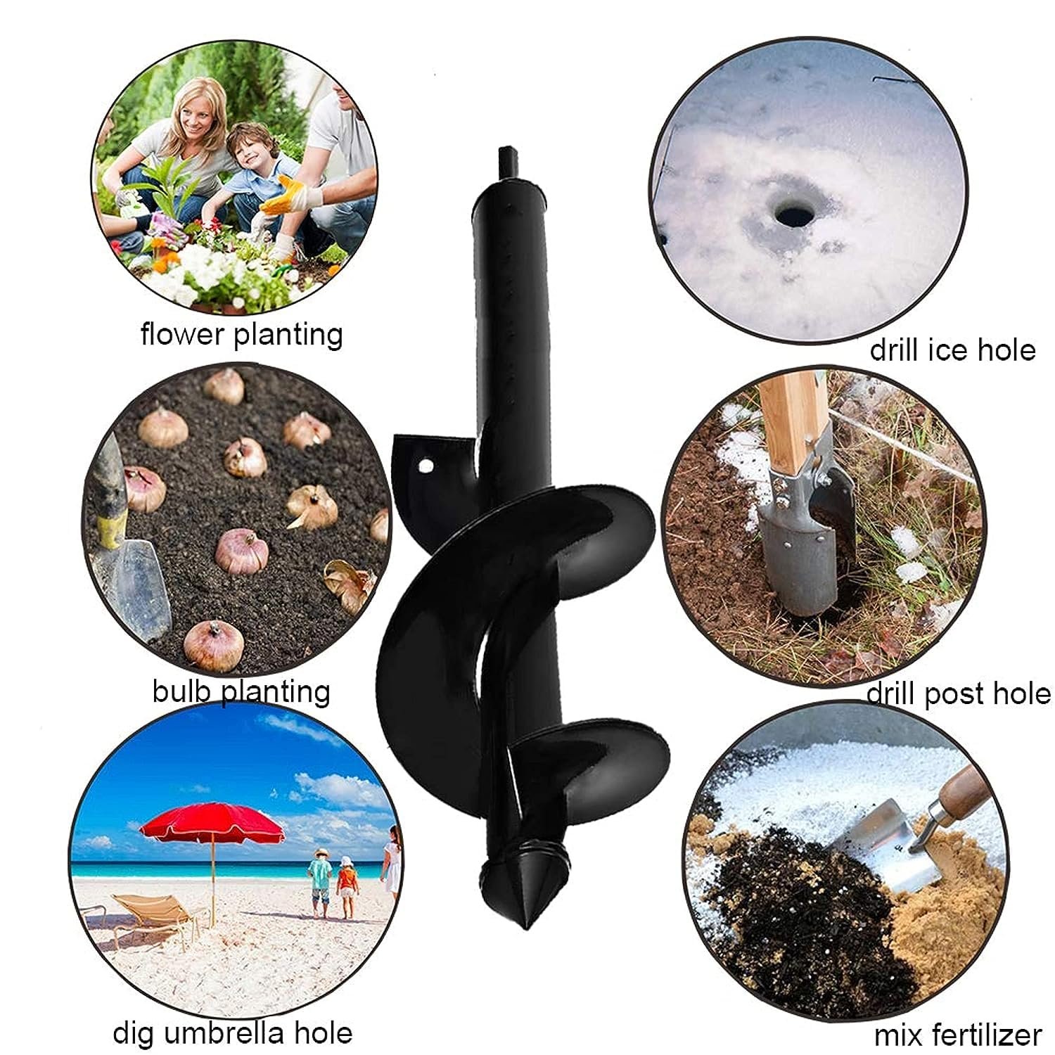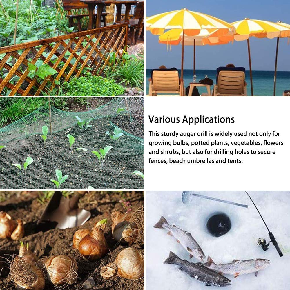 This 4? x 12? earth auger drill bit is designed for quick and efficient digging in gardening and outdoor applications. Made from heavy-duty steel with a durable coated finish, it offers strength and resistance to wear and corrosion. The spiral design with a sharp pointed tip allows easy penetration into soil, enabling fast and stable hole digging using a handheld drill. Ideal for planting bulbs, seedlings, and shrubs, as well as installing fence posts or umbrellas, this auger improves efficiency and reduces manual effort.
