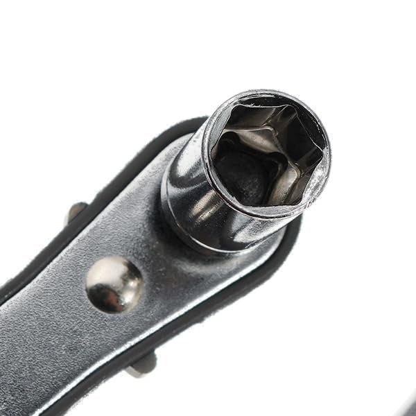 Compact mini ratchet wrench with 1/4? hex and square drive compatibility. Designed for efficient operation in tight and confined spaces with quick bit and socket switching.