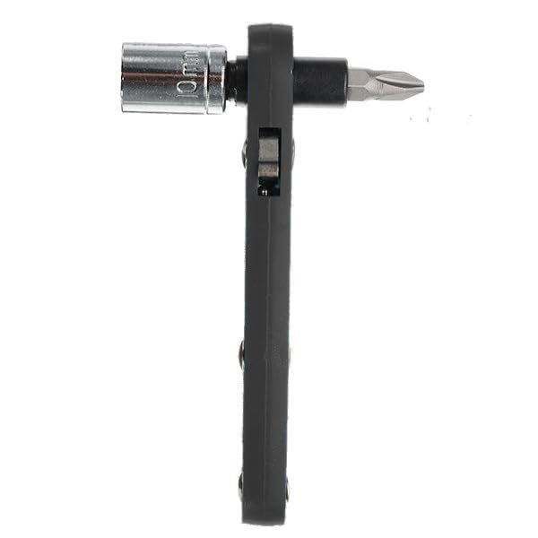This mini right-angle ratchet wrench is designed for tight spaces. Features 1/4? hex and square drive compatibility with reversible mechanism. Product Type: Mini Ratchet Wrench. Drive: 1/4?. Material: Alloy Steel. Application: Repairs and maintenance. Category: Hand Tools.