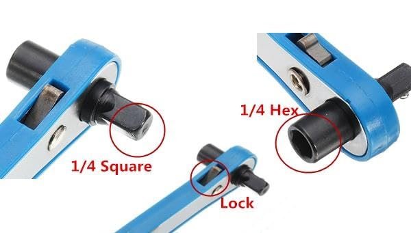 AASONS 1/4 Inch Hex & Square Drive Mini Screwdriver Socket Ratchet Wrench Handle Quick Change 2 in 1 Hand Tool