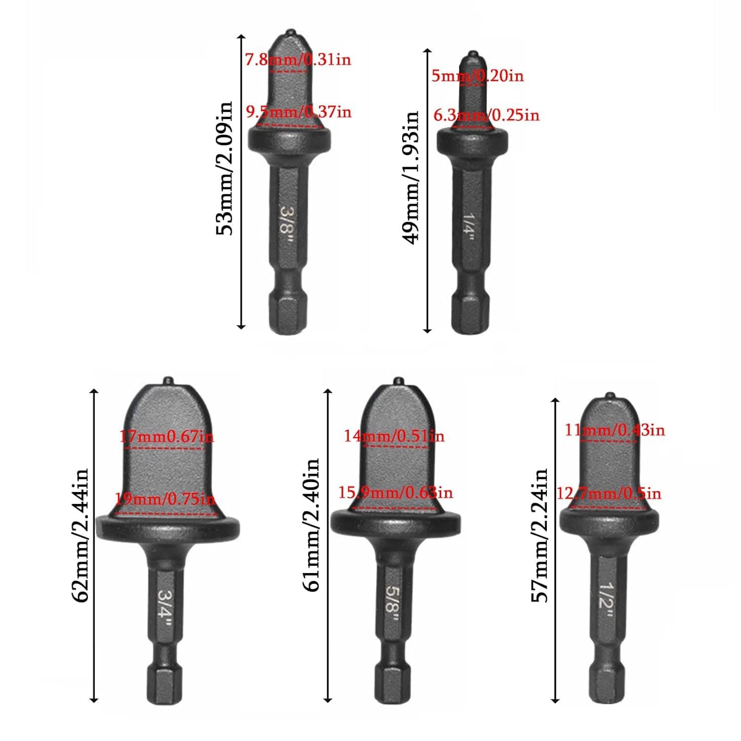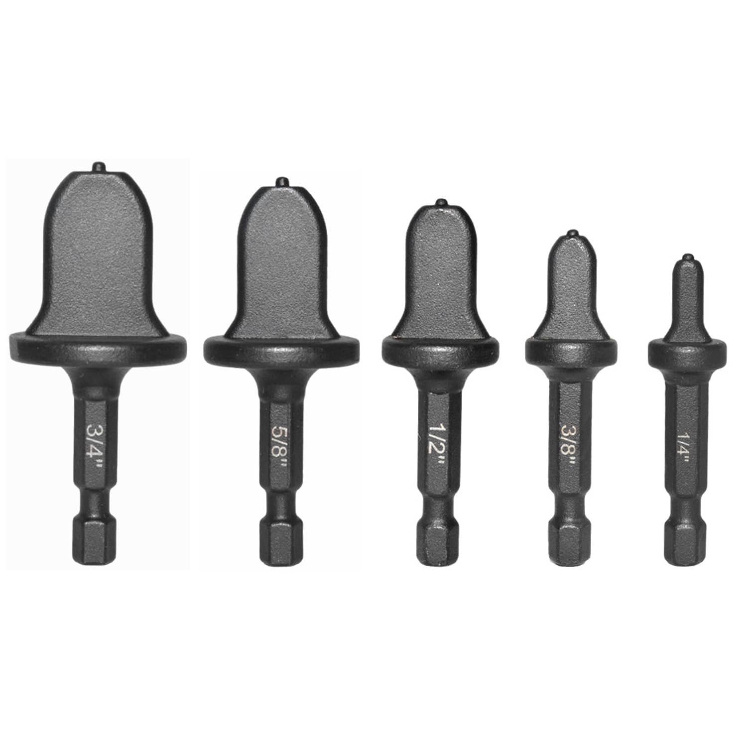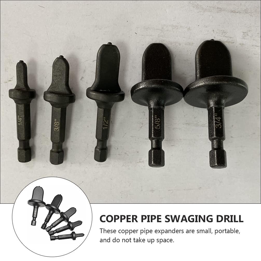 This 5-piece copper flaring and swaging expansion tool set is designed for HVAC repair and installation work involving air conditioning and refrigeration systems. Manufactured from high-hardness ball bearing steel, the tools provide durability, wear resistance, and reliable performance. When driven by an electric or impact drill, the hex shank design allows smooth expansion of soft copper pipes to ensure tight, leak-free joints. Compact and easy to use, this set is ideal for HVAC installers performing copper pipe reaming without complex procedures.