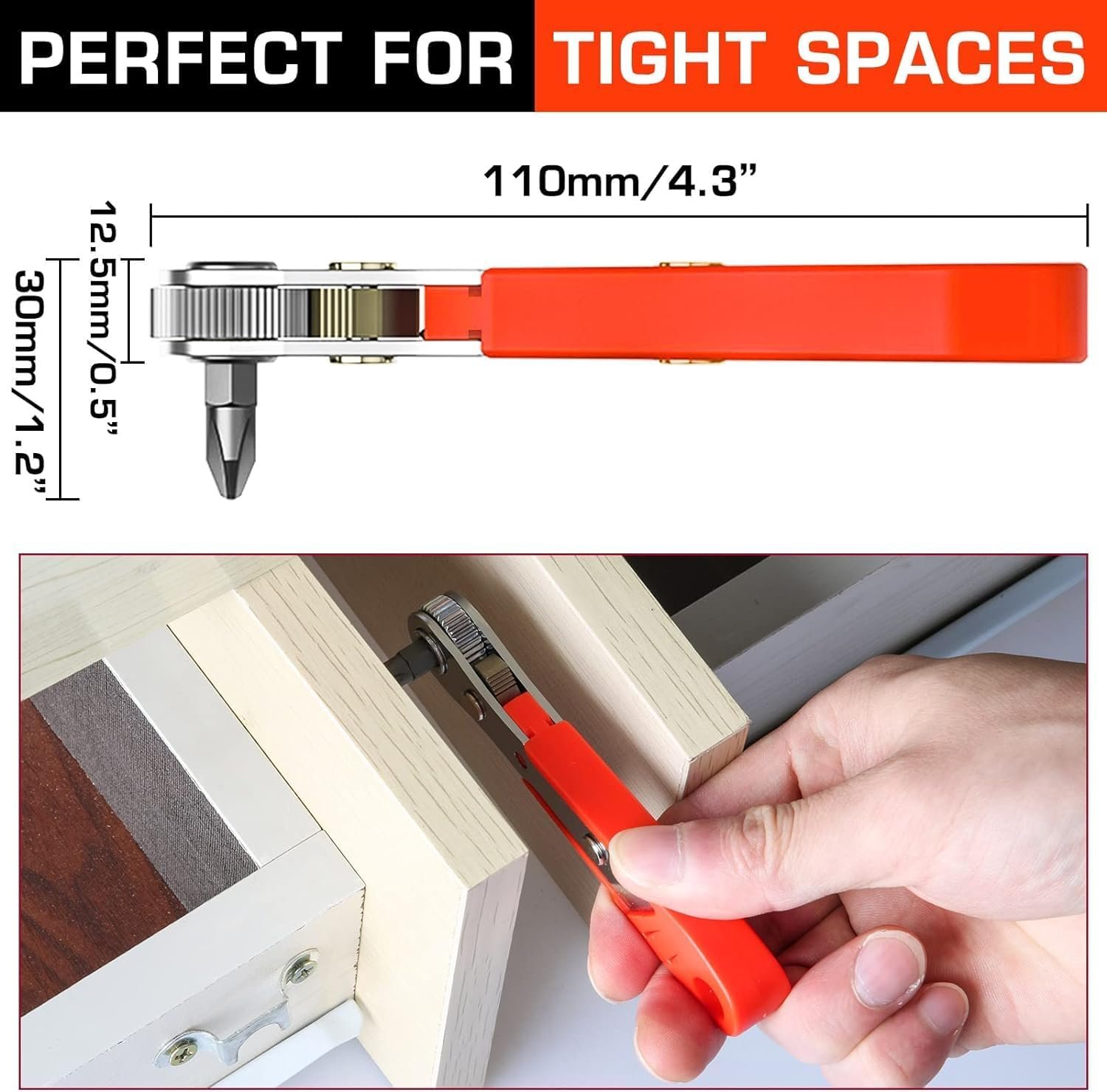Compact & Portable Design: Measuring approximately 110 mm (4.5 inches), the mini ratchet screwdriver is lightweight and easy to carry, making it ideal for confined and tight spaces.