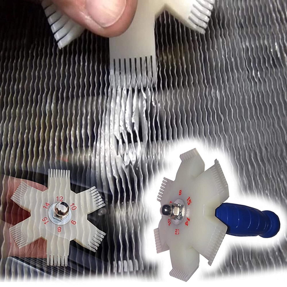 Maintain peak cooling efficiency with this Six-Sided Fin Straightener, designed for both home appliances and automotive radiators. Supporting 8, 9, 10, 12, 14, and 15 fins per inch, it efficiently repairs bent fins and removes lodged debris without puncturing the delicate surfaces, even in narrow spaces. Crafted from lightweight, durable aluminum, the tool is easy to use and maintain, prolonging the life of condensers, evaporators, and oil coolers. Essential for home DIY or professional repairs, it swiftly restores airflow to keep engines and air conditioners running cool.