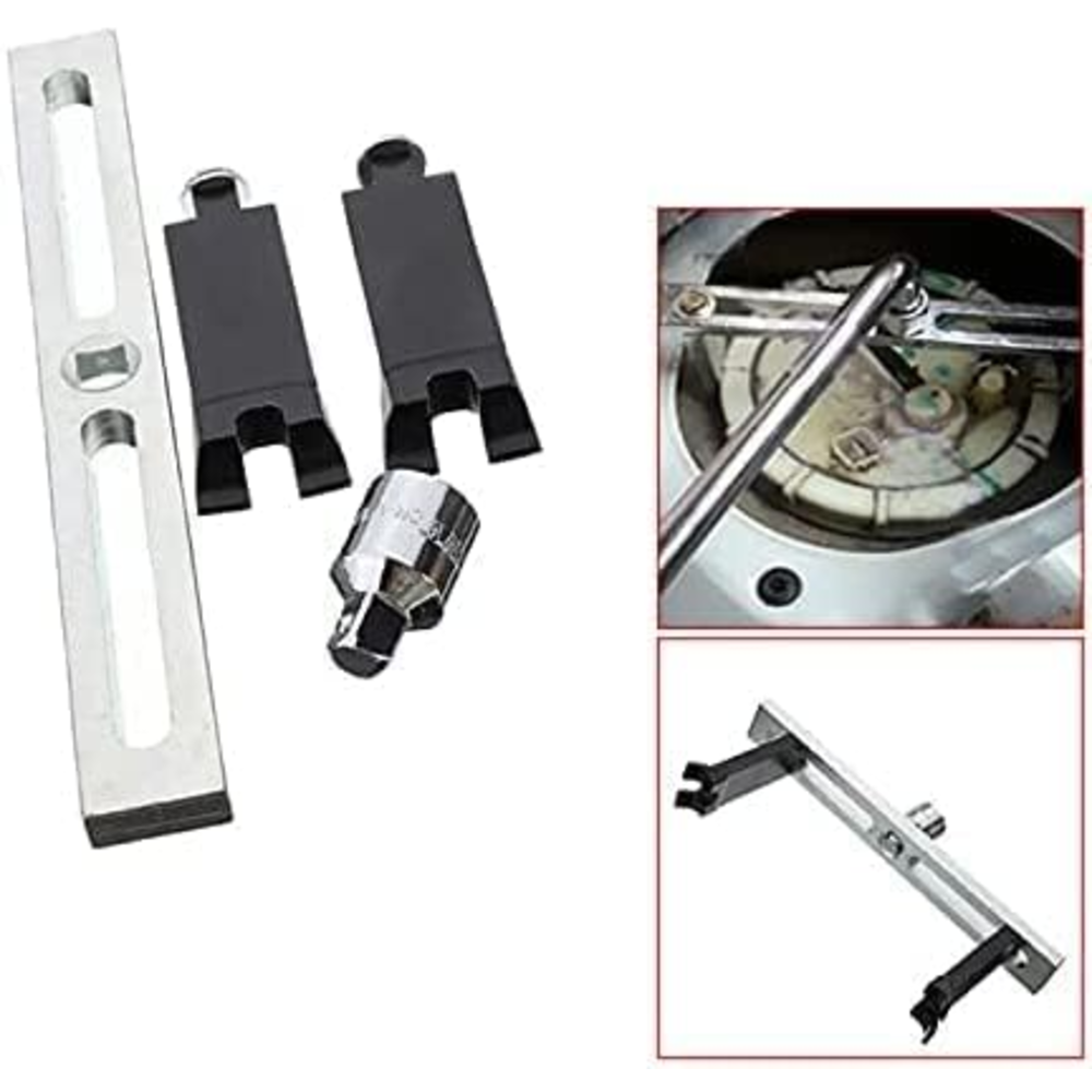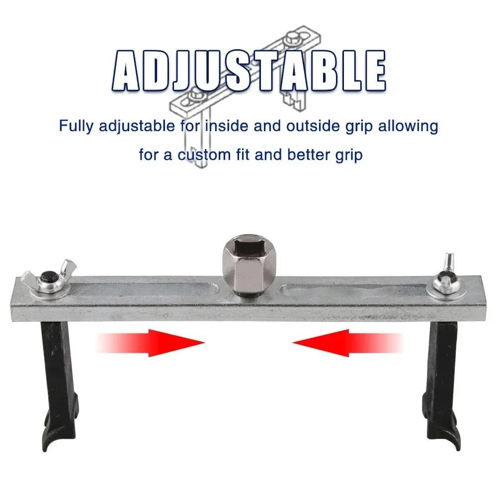 This universal Fuel Pump Module Spanner Wrench is engineered for effortless, damage-free removal and installation of fuel pump retaining rings. Highly versatile, it fits most plastic retaining rings with an adjustable range of 38mm to 168mm, compatible with all vehicles featuring silent fuel tank lids. Designed for quick jobs, this wrench requires only a 12mm wrench for arm width adjustment and a 3/8″ drive ratchet with extension. It easily engages ridges on threaded locking collars, ensuring zero damage to plastic ring nuts. An indispensable tool for replacing fuel pumps, sending units, or fuel filters, ensuring professional results.